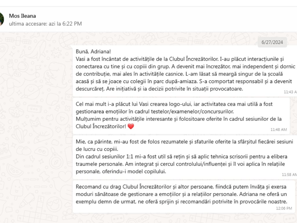 Testimonialele părinților pentru programele pentru copii